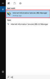 - On your desktop, click on the ‘Start’ menu and open ‘Internet Information Services (IIS) Manager’.