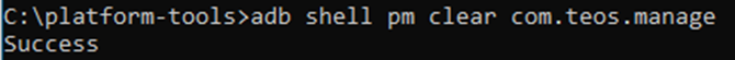 - Type: “adb shell pm clear ” and replace with the desired application package name.