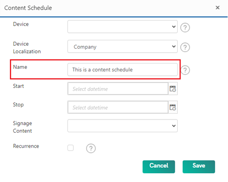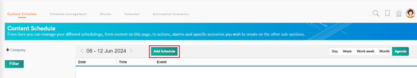 - Select the button ‘Add Schedule’ in the tab ‘Content Schedule’.