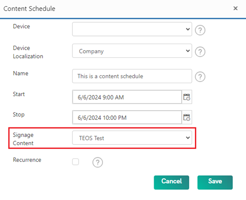 - After these points are set, choose the Signage content you want to schedule.
