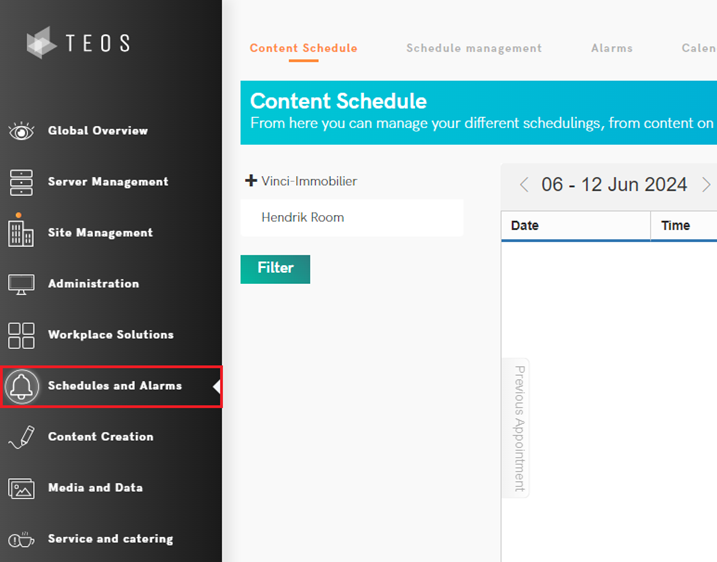 - Access to Schedules and Alarms in TEOS