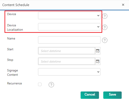 Device Localization: Select this option to create a schedule for a device group. This schedule will also become active on devices connected to groups linked to the selected device group.