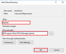 - Next, create or edit the virtual path under: services > fileprocessor.