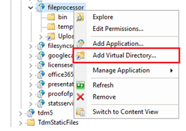 If the path does not exist, right-click fileprocessor and select Add Virtual Directory…