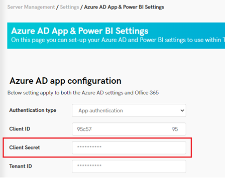 - Select the option ‘Azure AD App & Power BI Settings’.