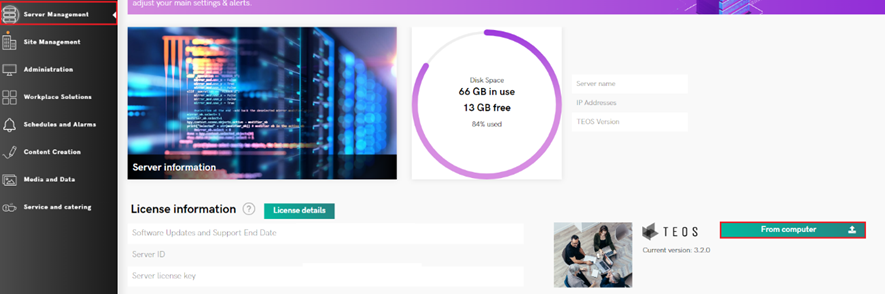 - Go to the ‘Server Management’ page in your TEOS web interface and select the ‘From Computer’ button on the right side.