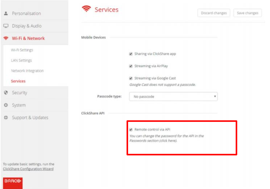 The API can be enabled or disabled, allowing or blocking access to the unit from external devices. It is not enabled by default.